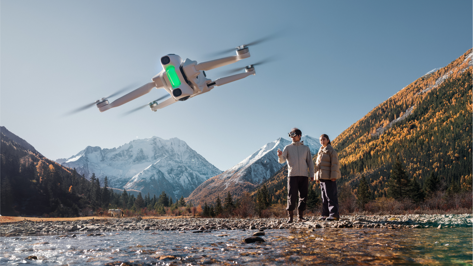 Visão em 360° em tempo real com rastreamento de cabeça — permite olhar em qualquer direção enquanto voa.